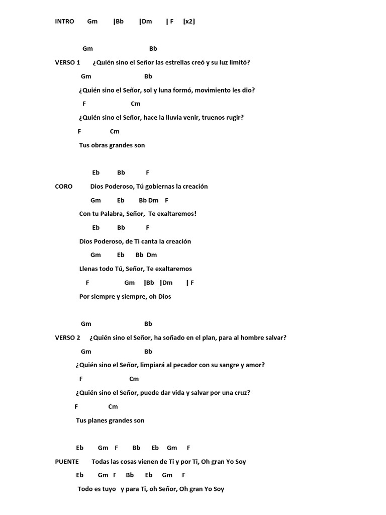 Dios Poderoso Acordes Y Letra Para Guitarra Ukulele Bajo Y Piano La Ibi - Tus obras grandes son dios poderoso tu gobiernas la creacion con tu palabra, senor te exaltaremos dios poderoso de ti canta la creacion llenas todo tu, senor te exaltaremos por siempre y siempre, oh dios.