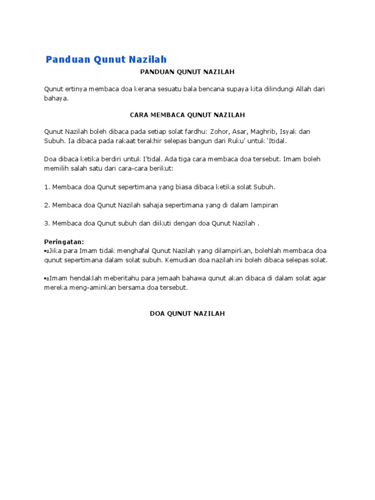 Doa Qunut Solat Subuh Jemaah / Umum mengetahui doa qunut dibaca pada iktidal rakaat kedua waktu solat subuh.