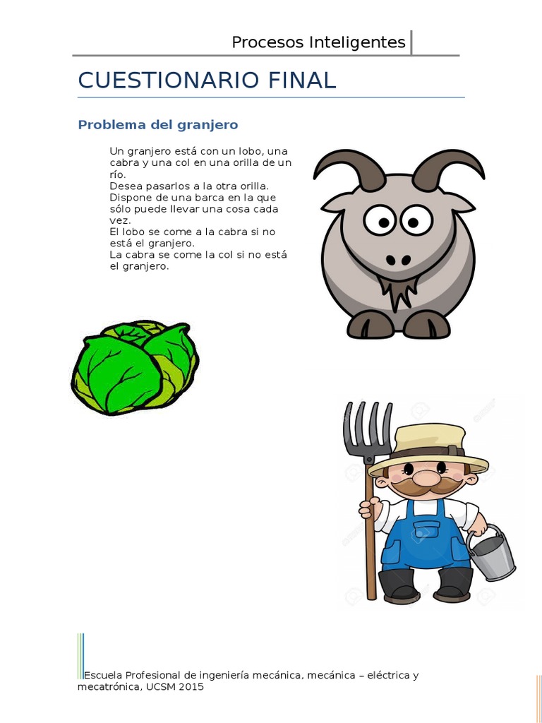 El Granjero El Lobo La Cabra Y La Col - Un pastor tiene que cruzar un rio con una cabra, un lobo y una col. El Granjero El Lobo La Cabra Y La Col / Encontro un lobo a una cabra que pastaba a la orilla de un precipicio.