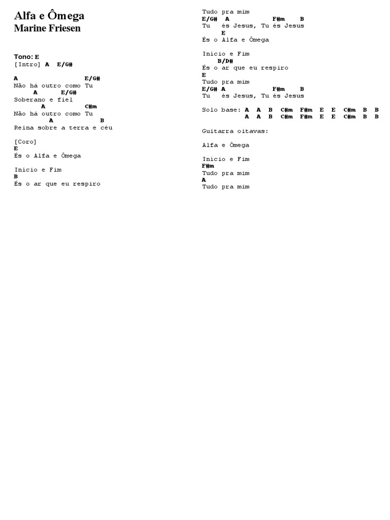 Alfa E Omega Cifras Para Violao Amor Jesus - Amor que me sustenta d7 es o pao que me alimenta gbm7 es o ar que eu respiro bm7 dbm7 d7 e tu es tudo para mim a es a fonte inesgotavel d7 es a rocha inabalavel gbm7 reconheco que nao posso bm7 dbm7 g7 a viver sem ti, jesus.