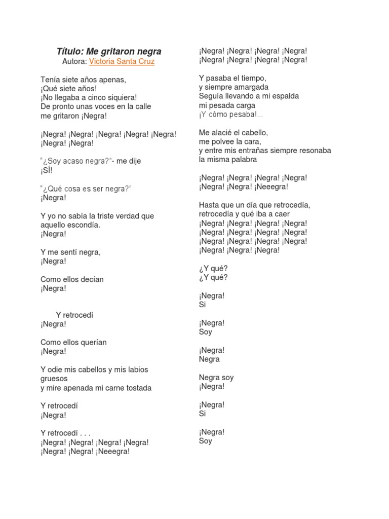 Mi Senal Me Gritaron Negra Victoria Santa Cruz Facebook - De pronto unas voces en la calle me gritaron ¡negra!