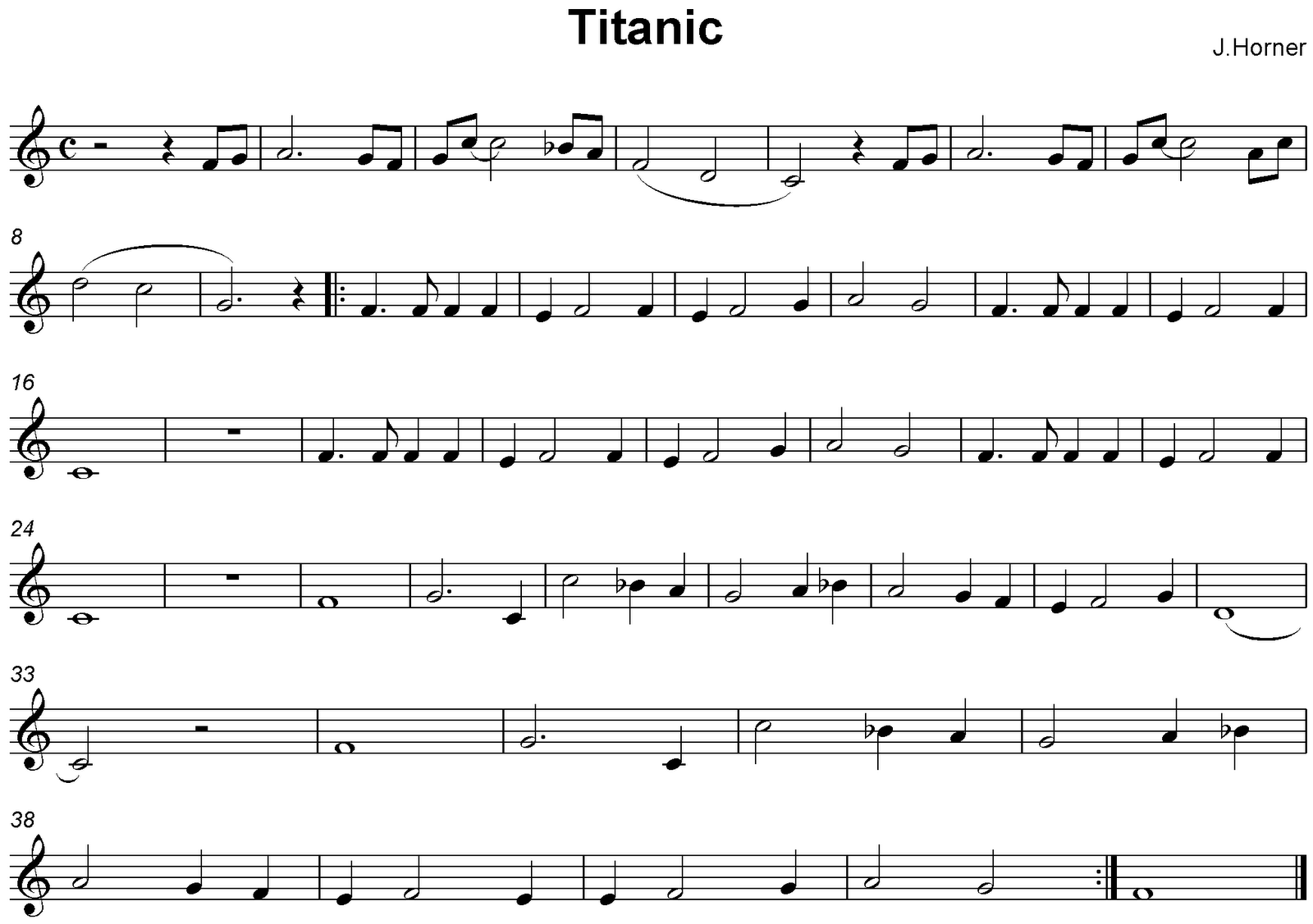 Titanic Partitura Para Flauta Dulce Flauta Dulce O Flauta De Pico - Las notas musicales de flauta titanic en pentagrama estan dentro de la escala de fa mayor.