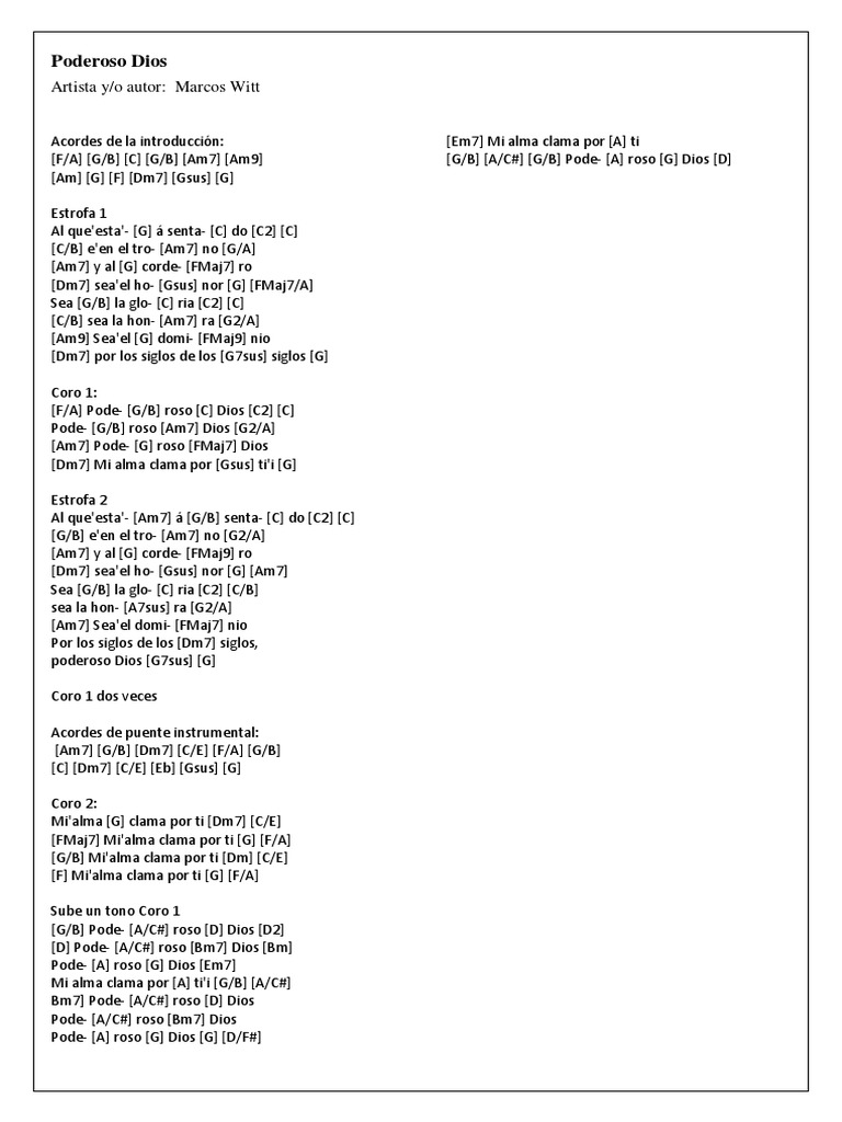 Poderoso Dios Chords Lyrics For Guitar Ukulele Bass Piano Marcos Witt - Letras, acordes y tabs para guitarra, bajo y ukulele.