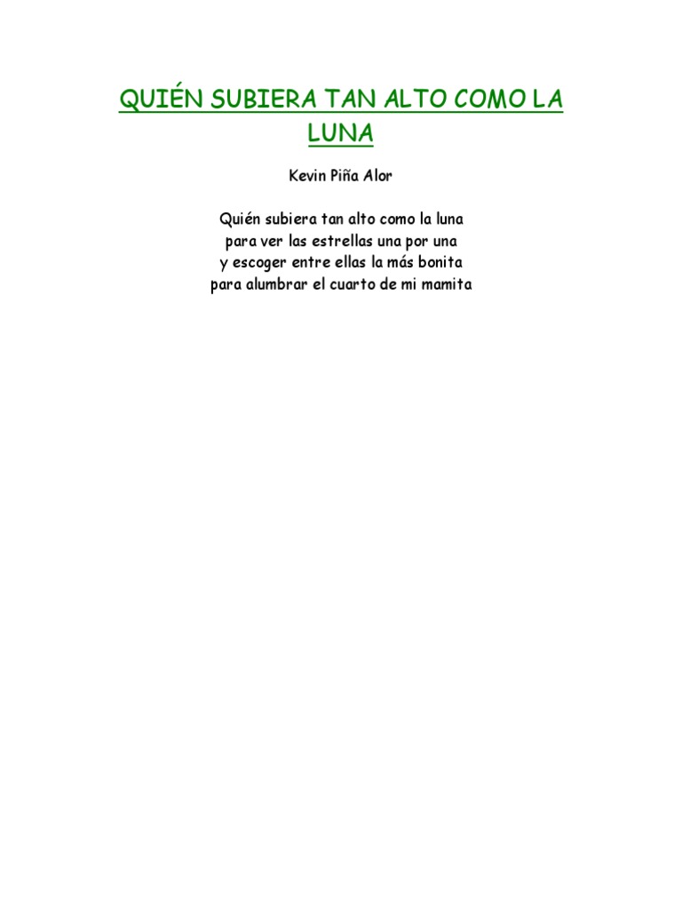 Quién Subiera Tan Alto Como La Luna : Para alumbrar el cuarto de mi mamita. Quién Subiera Tan Alto Como La Luna - Para alumbrar el cuarto de mi mamita.