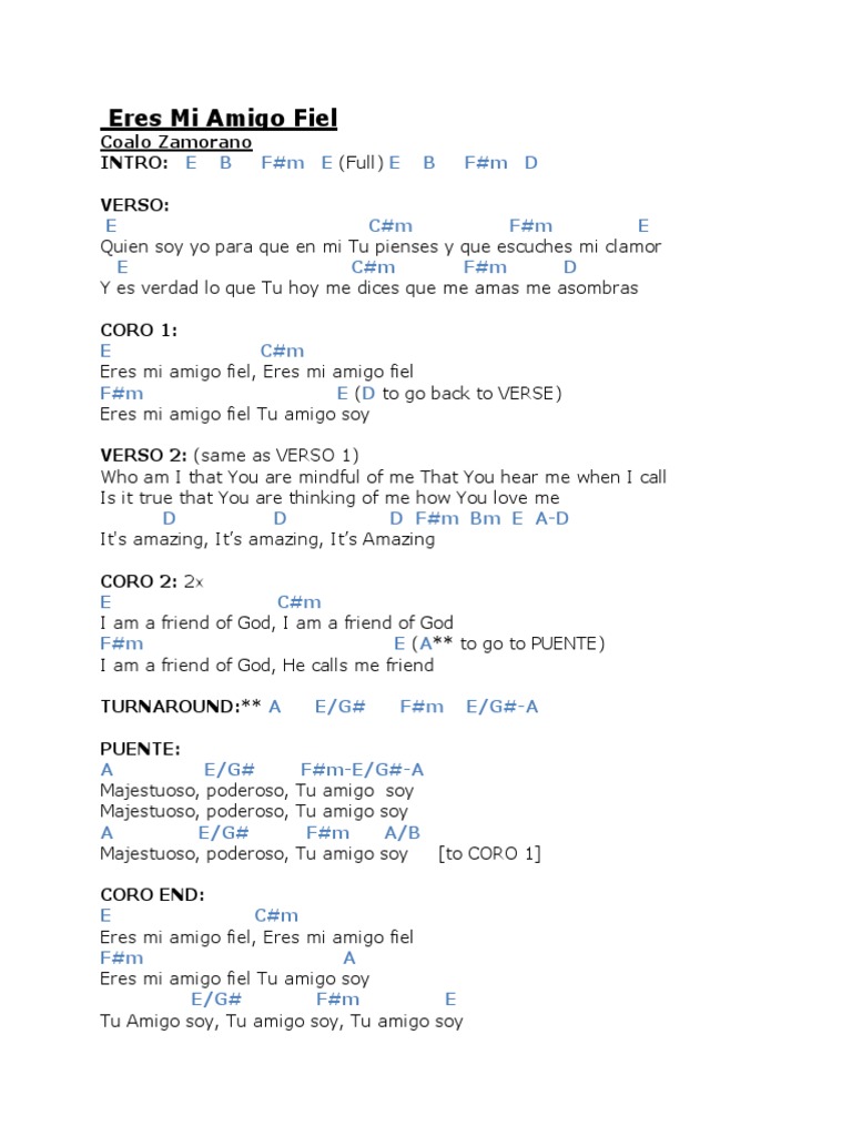 Eres Mi Amigo Fiel Friend Of God Chords - Acordes de la rola eres mi amigo fiel by zamer in music, guitar, and chords.